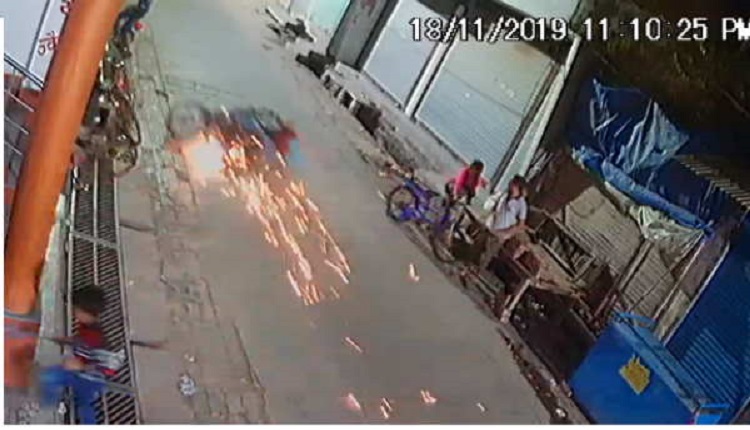दरअसल रात के समय सूनी पड़ी रोड पर बच्चे बैडमिंटन खेल रहे थे। इसी बीच सड़क के छोर से बच्चों की तरफ आ रहा तेज रफ्तार बाइक सवार अचानक अनियंत्रित होकर पलट गया।