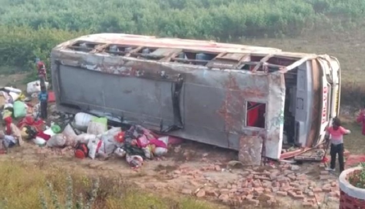 श्रमिकों को लेकर नेपाल जा रही बस पलटी, एक की मौत, 56 घायल