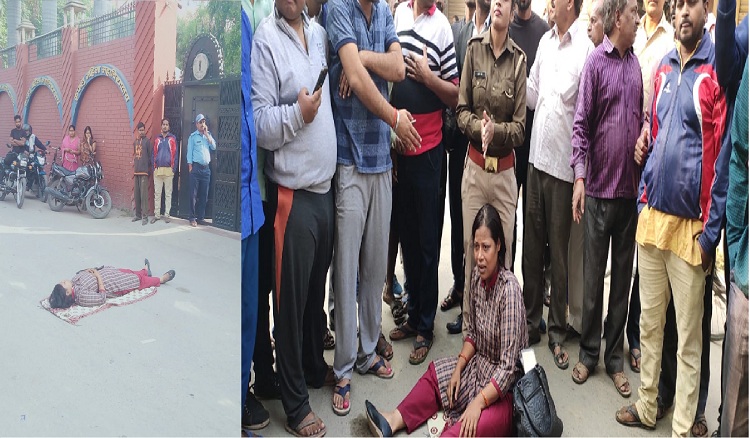 परीक्षा न दे पाने से आहत बीएड की छात्रा ने विद्यालय के सामने किया हंगामा