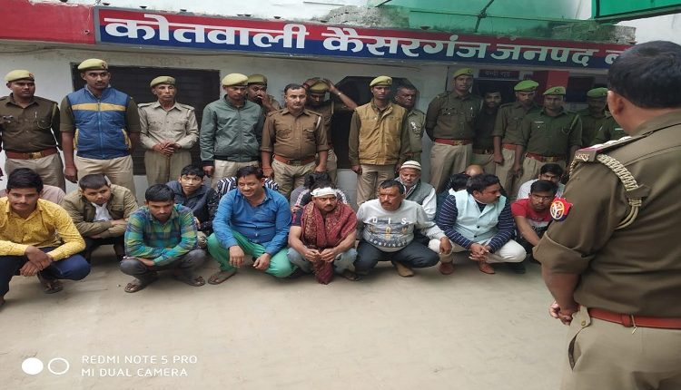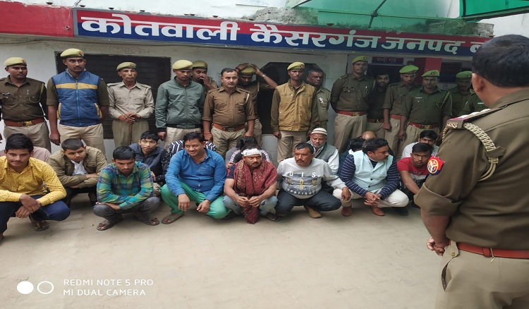 पुलिस ने इस उपद्रव करने वाले दोनो पक्षों के 16 लोगों को गिरफ्तार किया है। कैसरगंज थाना प्रभारी की ओर से भी केस दर्ज कराया गया है। एएसपी सिटी अजय प्रताप व सीओ कैसरगंज स्थित पर नजर रखे है। गांव में पीएसी तैनात कर दी गयी है। वारदात के पीछे ग्राम पंचायत की चुनावी रंजिश बतायी जा रही है।